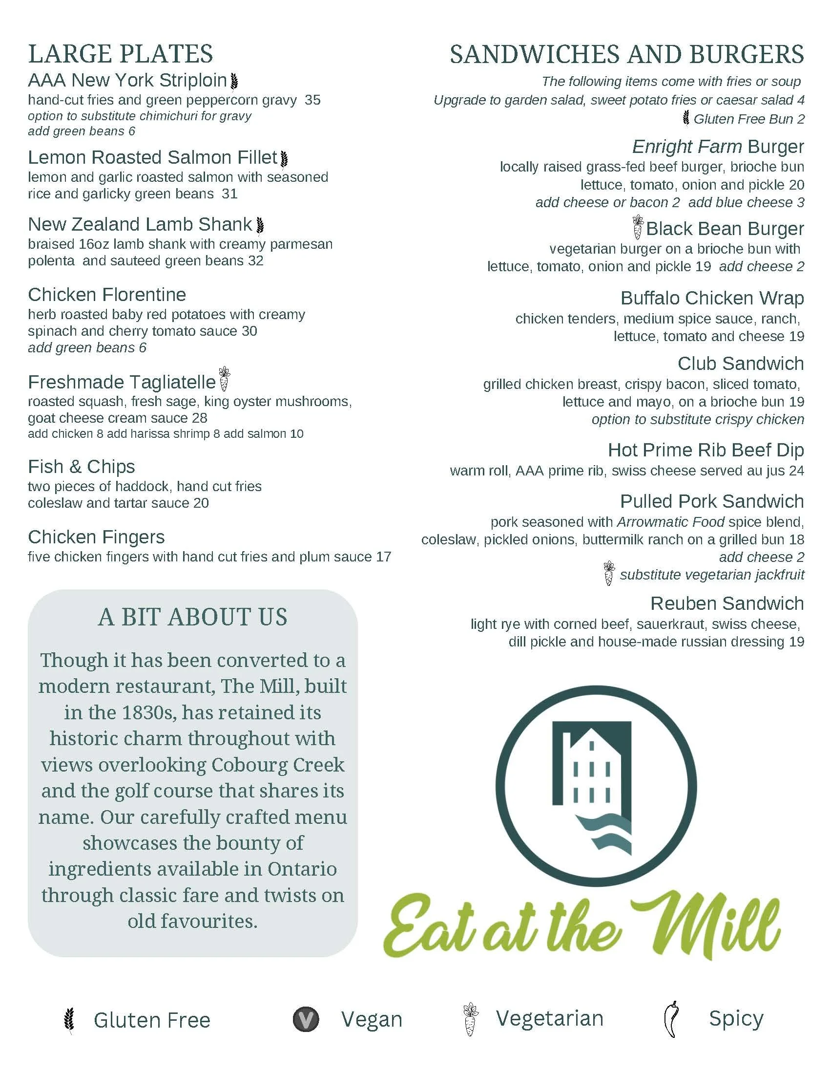 Nestled in a beautifully restored old mill, our picturesque restaurant served a menu crafted from the finest local ingredients, emphasizing quality and tradition. Discover our daily features and explore our curated selection of high-quality wines and local craft beers. Join us for an enchanting dining experience that celebrates the rich flavours and serene beauty of our region.